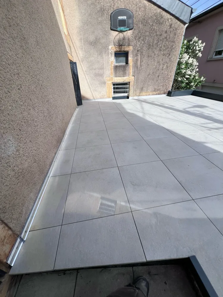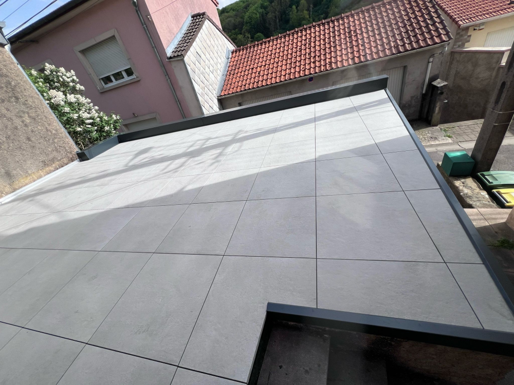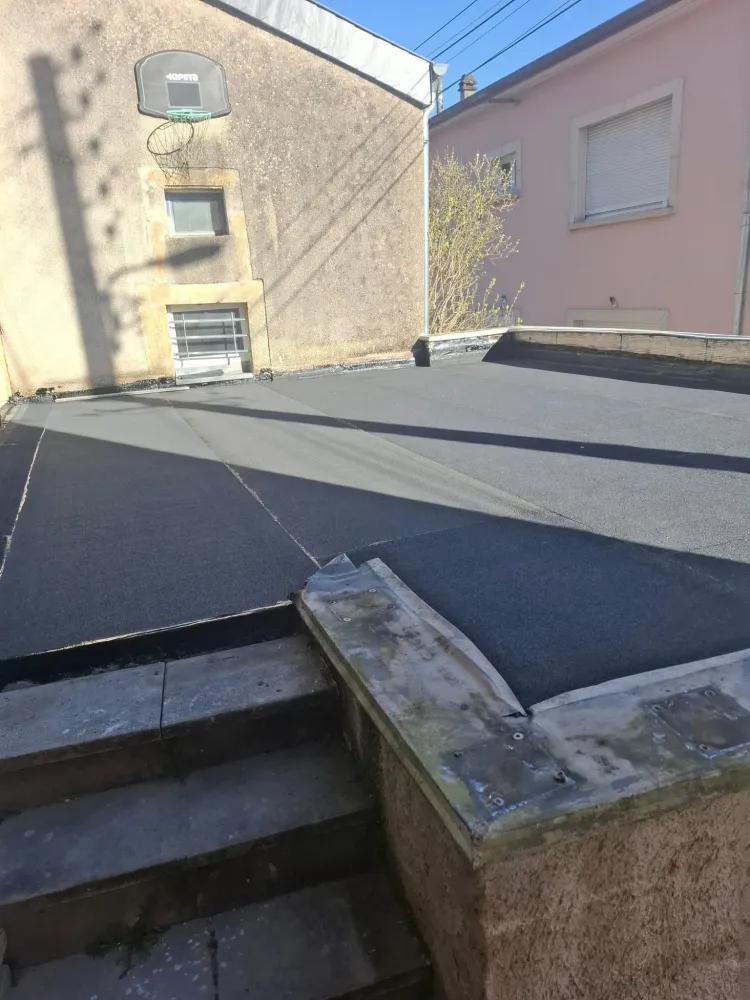JNR Étanchéité est récemment intervenu sur le secteur de Hayange pour la réalisation complète d'une étanchéité en bitume chaud, suivie de la pose de dalles sur plots et de couvertines en finition.