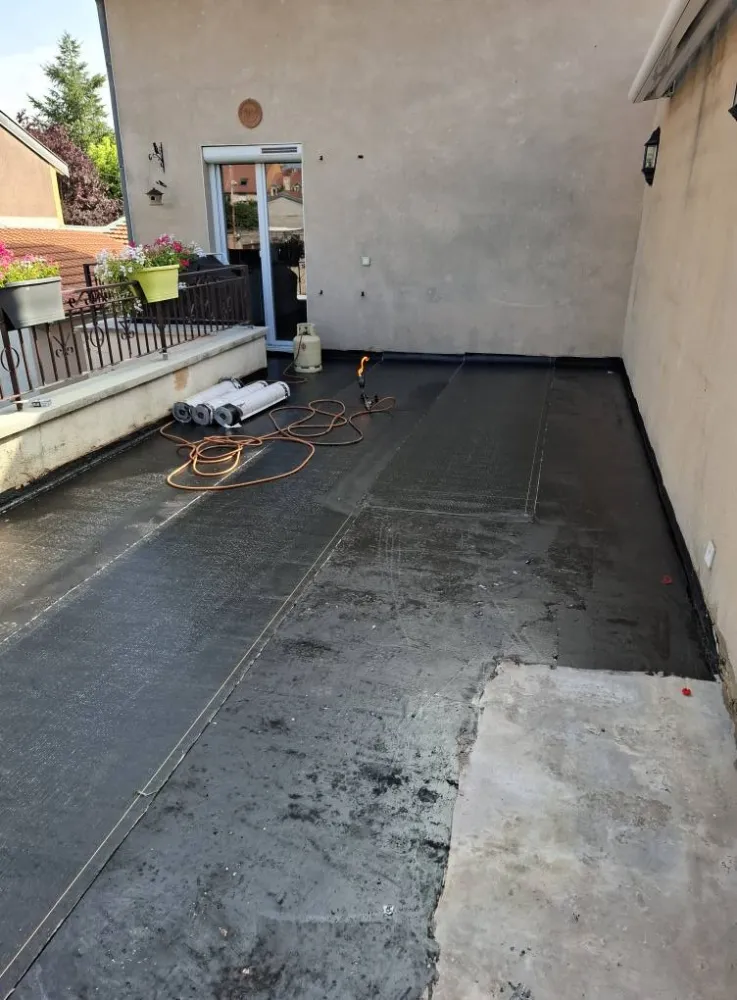 - Mise en œuvre du système d’étanchéité : application d’une membrane bitumineuse, selon la configuration et l’usage de la terrasse (accessible, végétalisée, technique…)